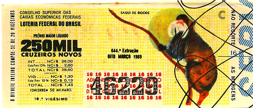 You are here: Home Loteria Federal do Brasil Extrações da Loteria Federal do Brasil 1969 03 Extração 0644 - Sagüi de Bigode