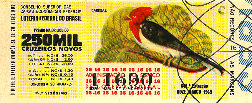 Série Economia, extração 0645 com tema Cardeal. Extraída em: 12/03/1969