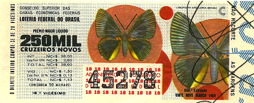Série Economia, extração 0650 com tema Lyropteryx Apoelonia (Brasil). Extraída em: 29/03/1969