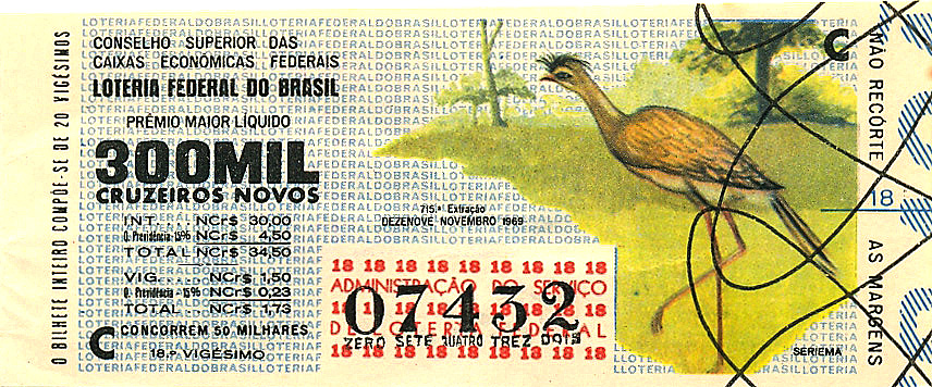 Série Economia, extração 0715 com tema Seriema. Extraída em: 19/11/1969