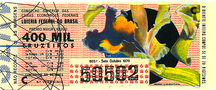 Série Economia, extração 0803 com tema Orquídea (Laeliocattleya). Extraída em: 07/10/1970