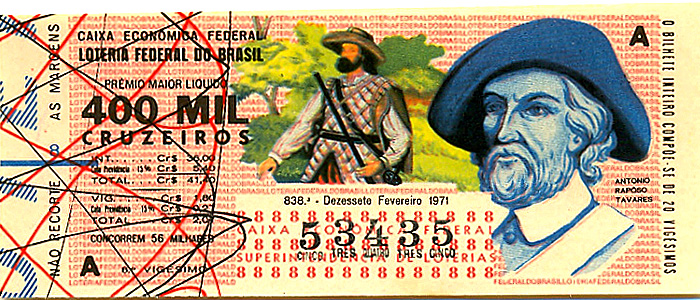 Série Vultos Históricos, extração 0838 com tema Antônio Raposo Tavares.. Extraida em: 17/02/1971