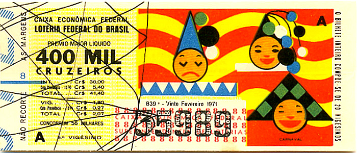 Série Vultos Históricos, extração 0839 com tema Carnaval.. Extraida em: 20/02/1971