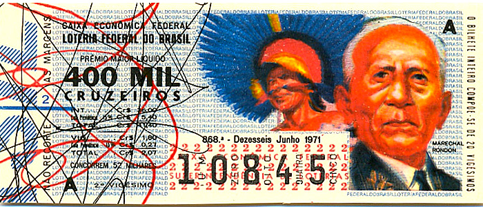 Série Vultos Históricos, extração 0868 com tema Marechal Rondon.. Extraida em: 16/06/1971