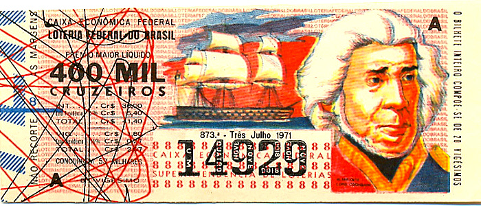 Série Vultos Históricos, extração 0873 com tema Almirante Lord Cochrane.. Extraida em: 03/07/1971