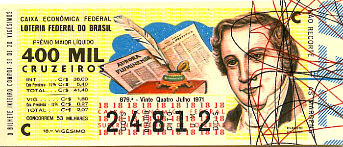 Série Vultos Históricos, extração 0879 com tema Evaristo da Veiga. Extraida em: 24/07/1971