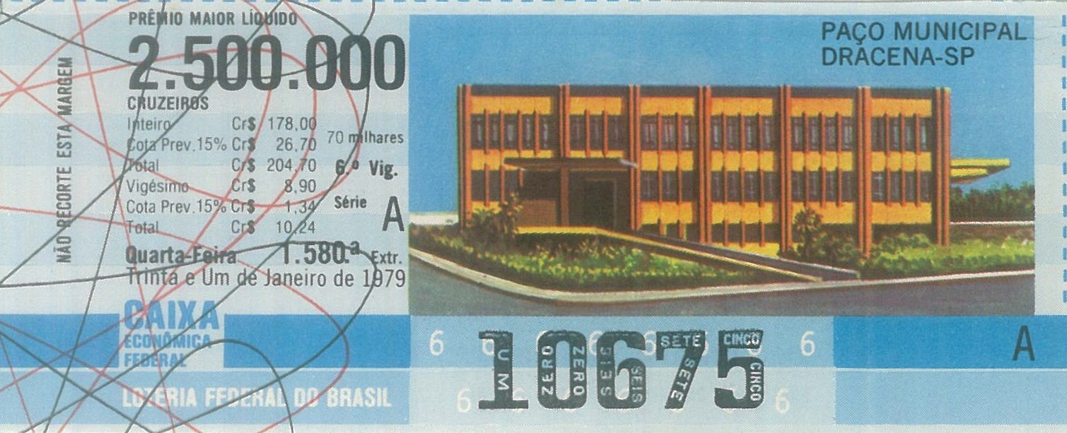 Série Economia, extração 1580 com tema Paço Municipal - Dracena - SP. Extraída em: 31/01/1979