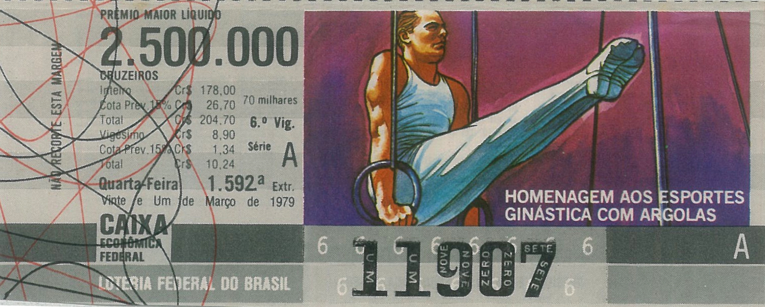 Série Economia, extração 1592 com tema Homenagem aos Esportes - Ginástica com Argolas. Extraída em: 21/03/1979