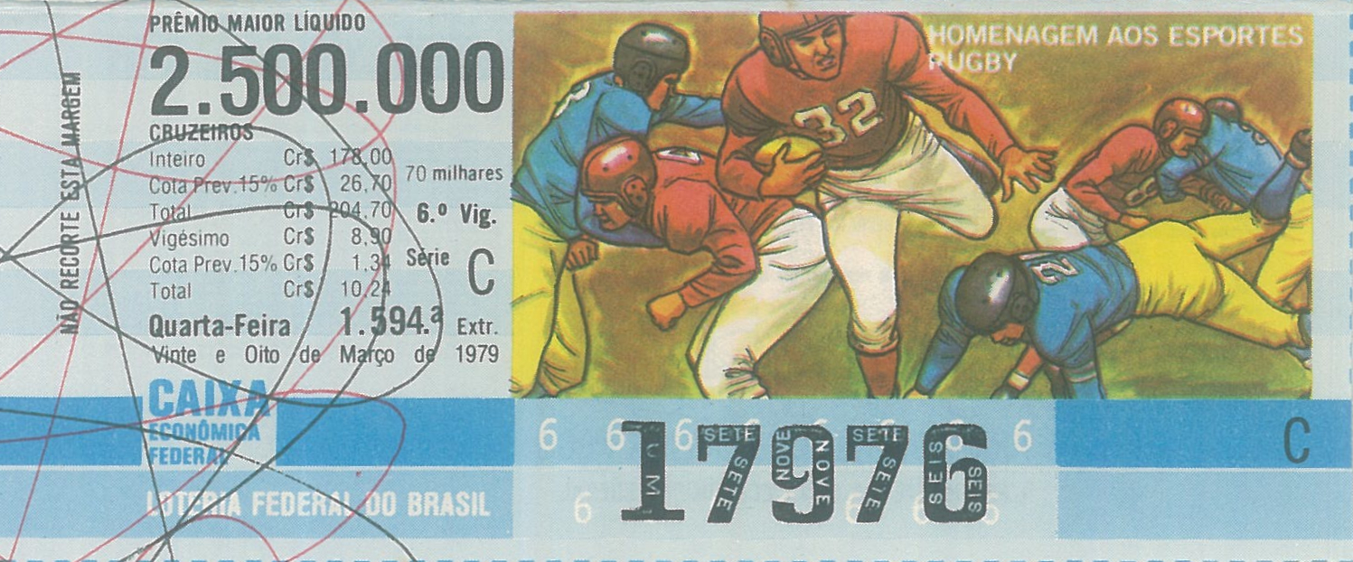 Série Economia, extração 1594 com tema Homenagem aos Esportes - Rugby. Extraída em: 28/03/1979
