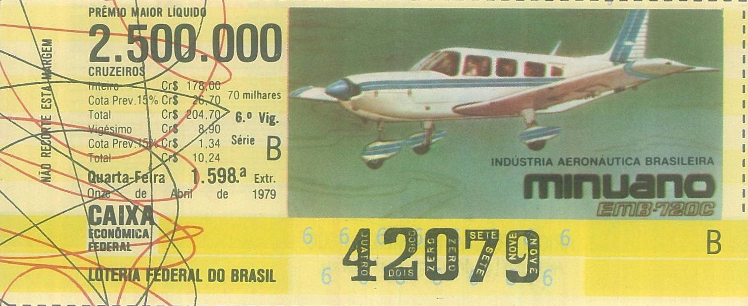 Série Economia, extração 1598 com tema Indústria Aeronática Brasileira - Minuano - EMB 720C. Extraída em: 11/04/1979
