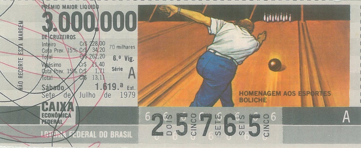 Série Economia, extração 1619 com tema Homenagem aos Esportes - Boliche. Extraída em: 07/07/1979
