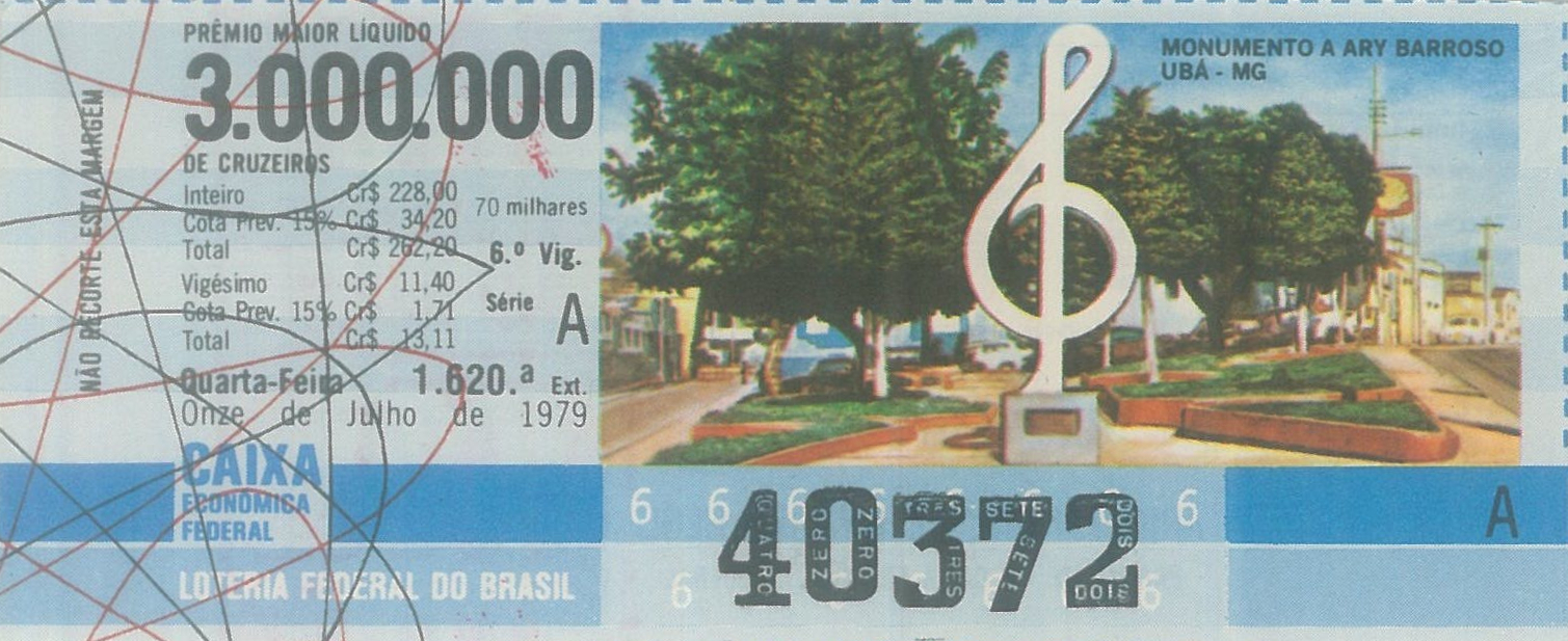 Série Economia, extração 1620 com tema Monumento a Ary Barroso - Ubá - MG. Extraída em: 11/07/1979