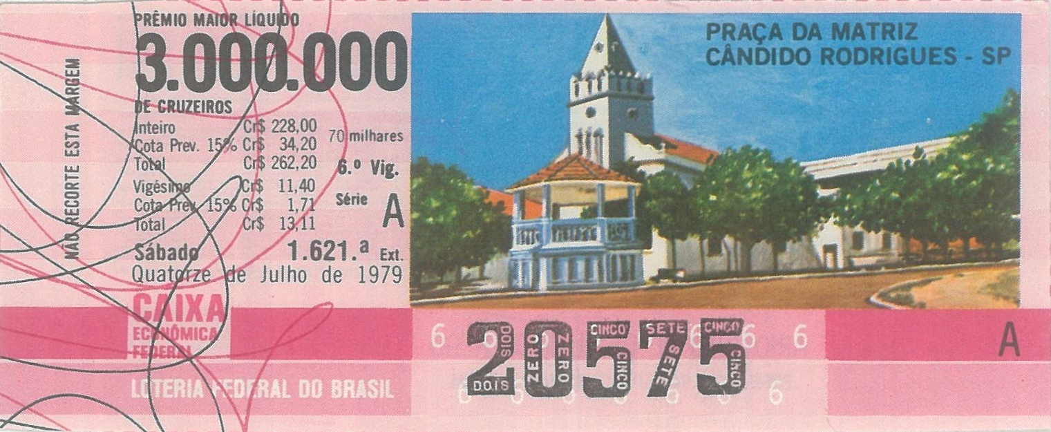 Série Economia, extração 1621 com tema Praça da Matriz - Cândido Rodrigues - SP. Extraída em: 14/07/1979