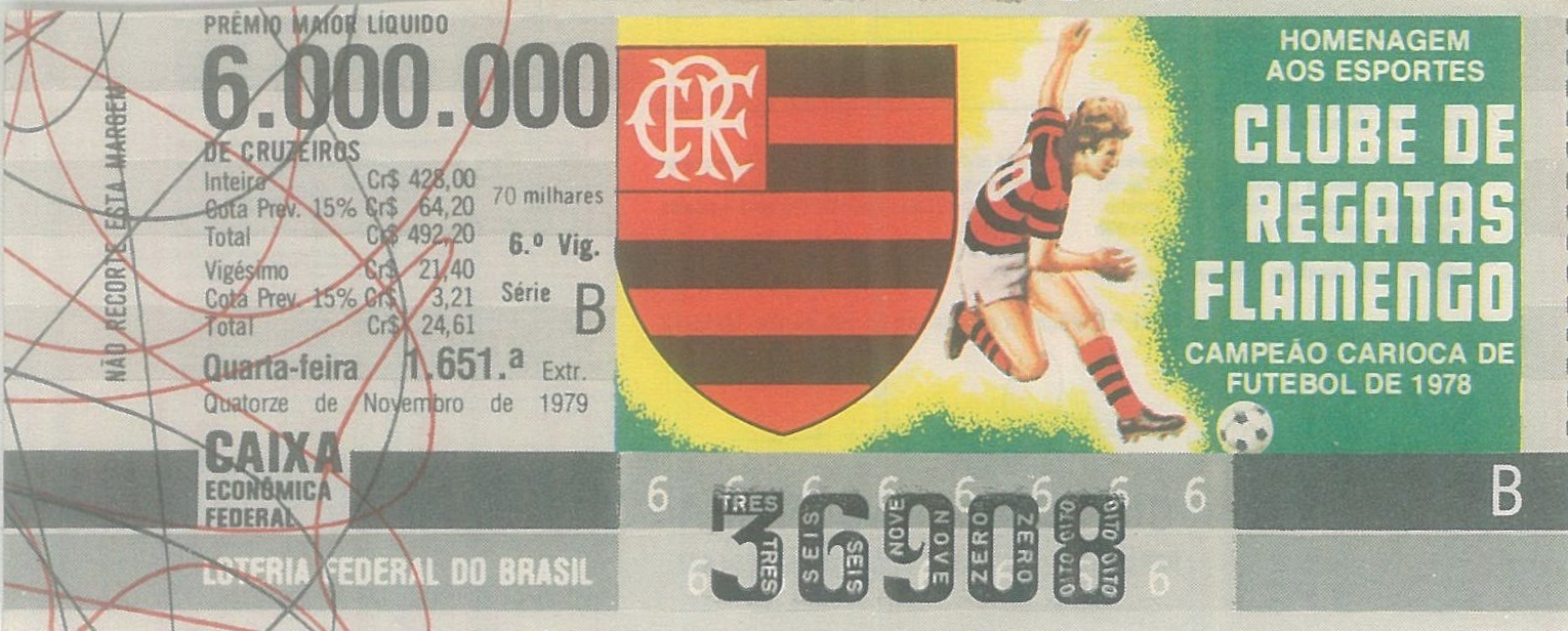 Série Economia, extração 1651 com tema Homenagem aos Esportes - Clube de Regatas Flamengo. Extraída em: 14/11/1979