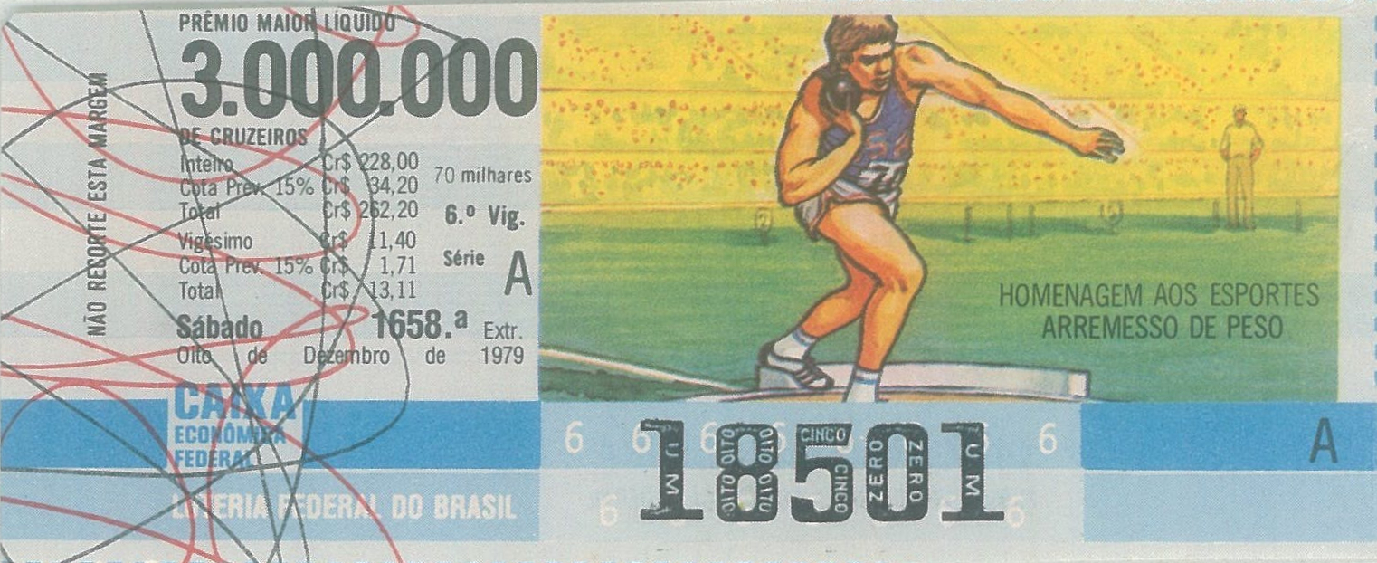 Série Economia, extração 1658 com tema Homenagem aos Esportes - Arremeso de Peso. Extraída em: 08/12/1979