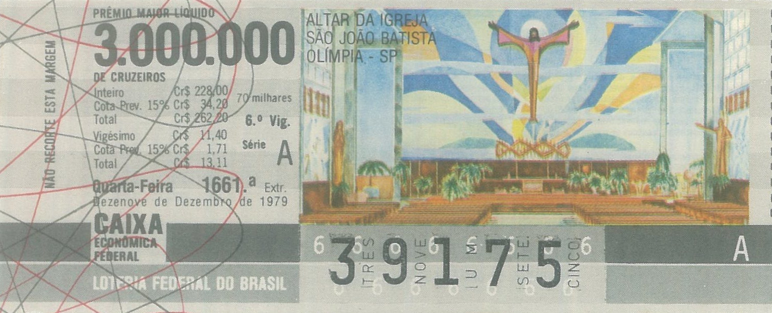 Série Economia, extração 1661 com tema Altar da Igreja São João Batista - Olímpia - SP. Extraída em: 19/12/1979